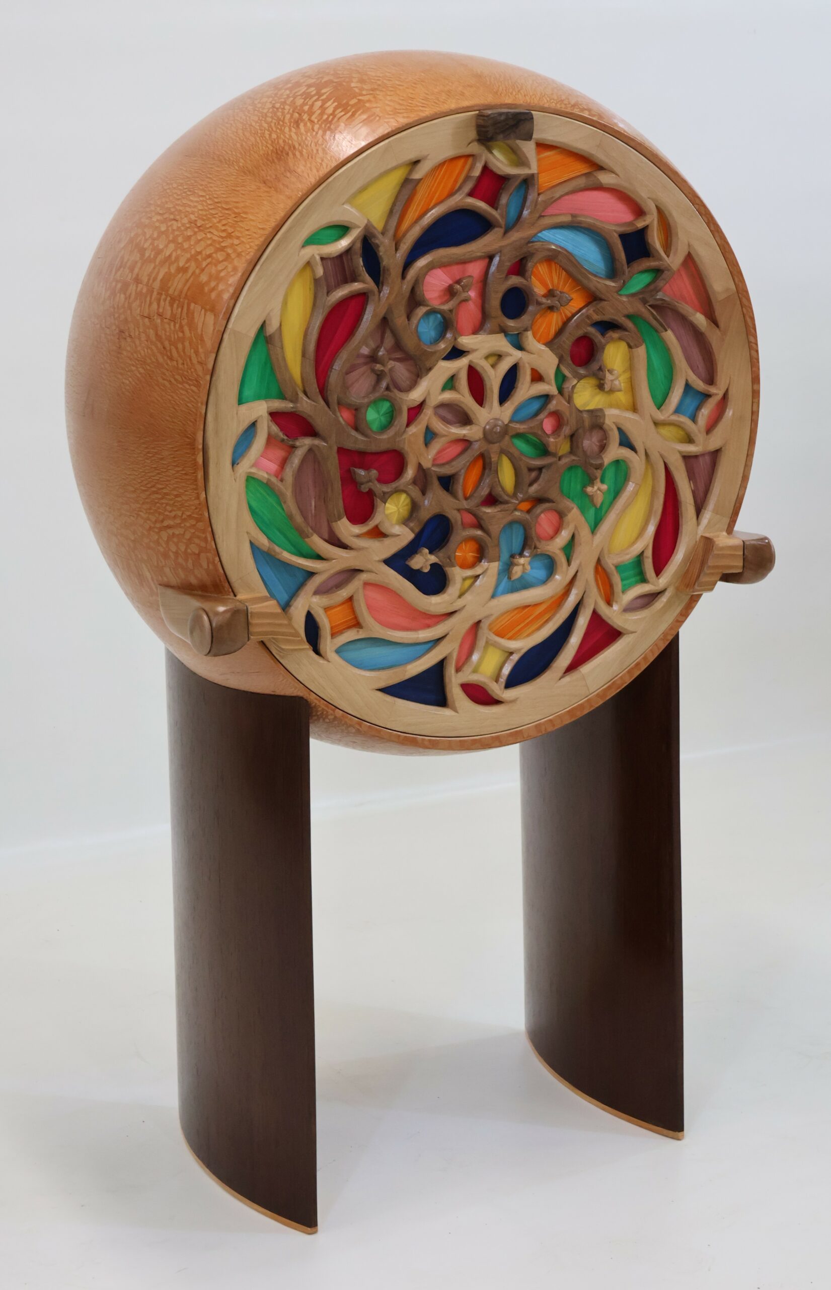 Accueil > "Arentele" - Secrétaire patatoïde plaqué en Louro faïa, abattant inspiré du Duomo de Milan, marqueterie de paille, noyer. Dimensions :1400xØ800 > VINCENT R