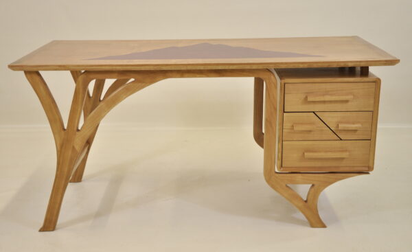 Accueil > Bureau avec piètement, caisson et tiroirs en merisier et plateau plaqué en merisier et Amarante. Dimensions : 1600x700x780 > MAXENCE