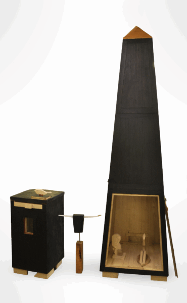 Accueil > "L'obélisque aux abeilles" - Ruche pédagogique en châtaignier brulé en surface (assemblage sans colle, ni vis) réalisée pour que les abeilles entrent et sortent sans croiser les curieux. Des fenêtres permettent d'entrevoir nos protégées. Dimensions : 2420x660x28 > Jean Michel