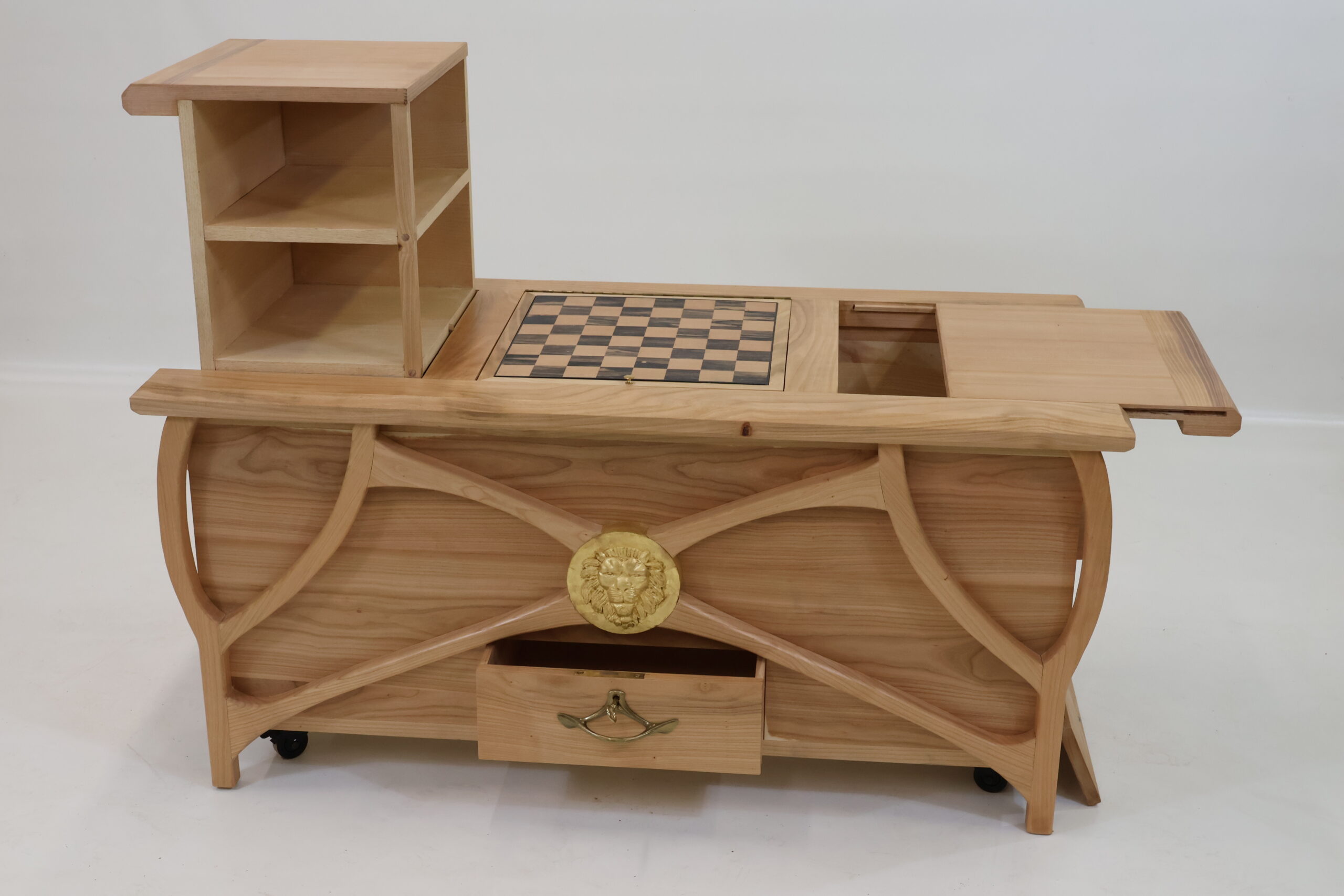 Accueil > Table basse à jeux avec plateaux de jeux interchangeables et rangement secret pour les pièces. Dimensions : 1265x530x560 > NOLAN